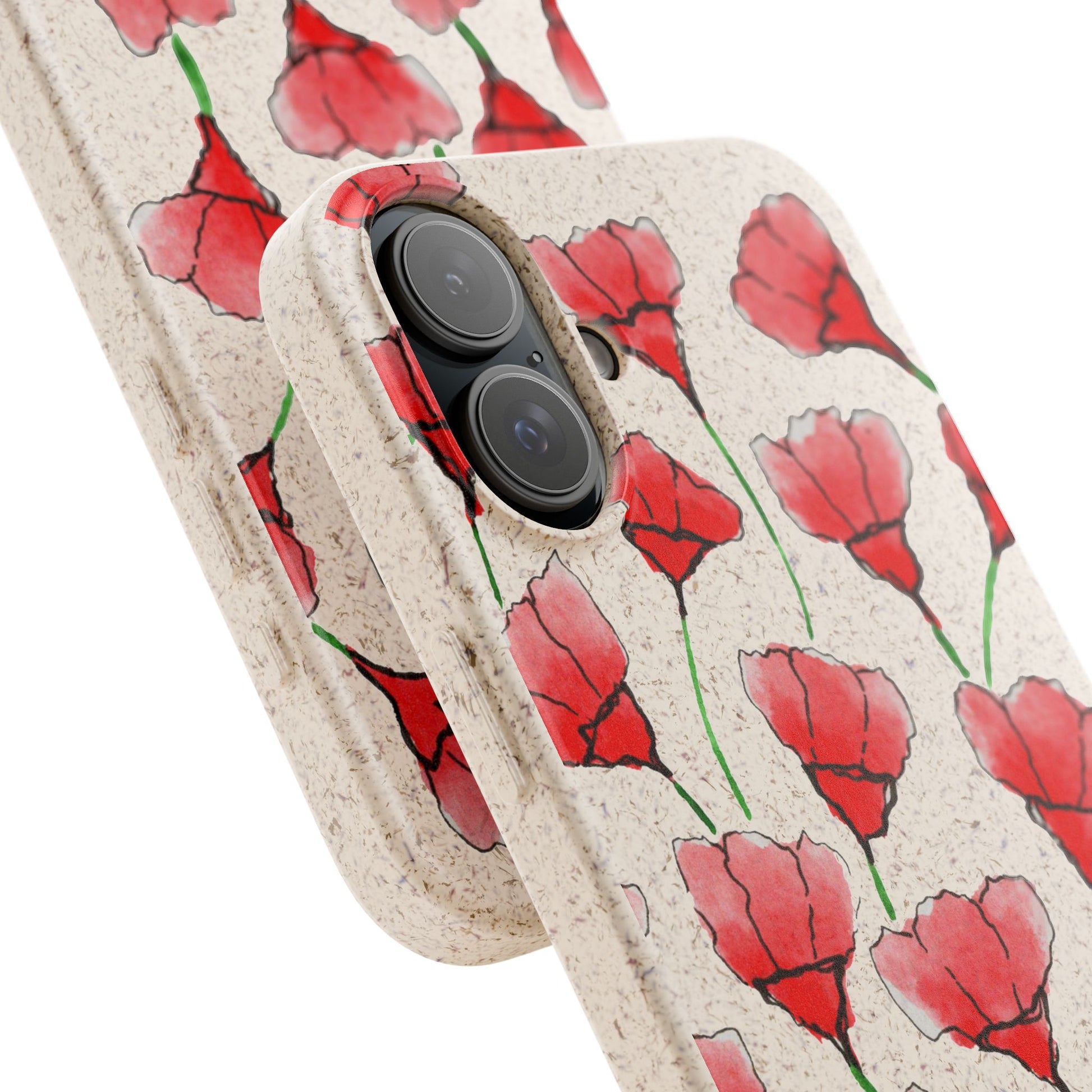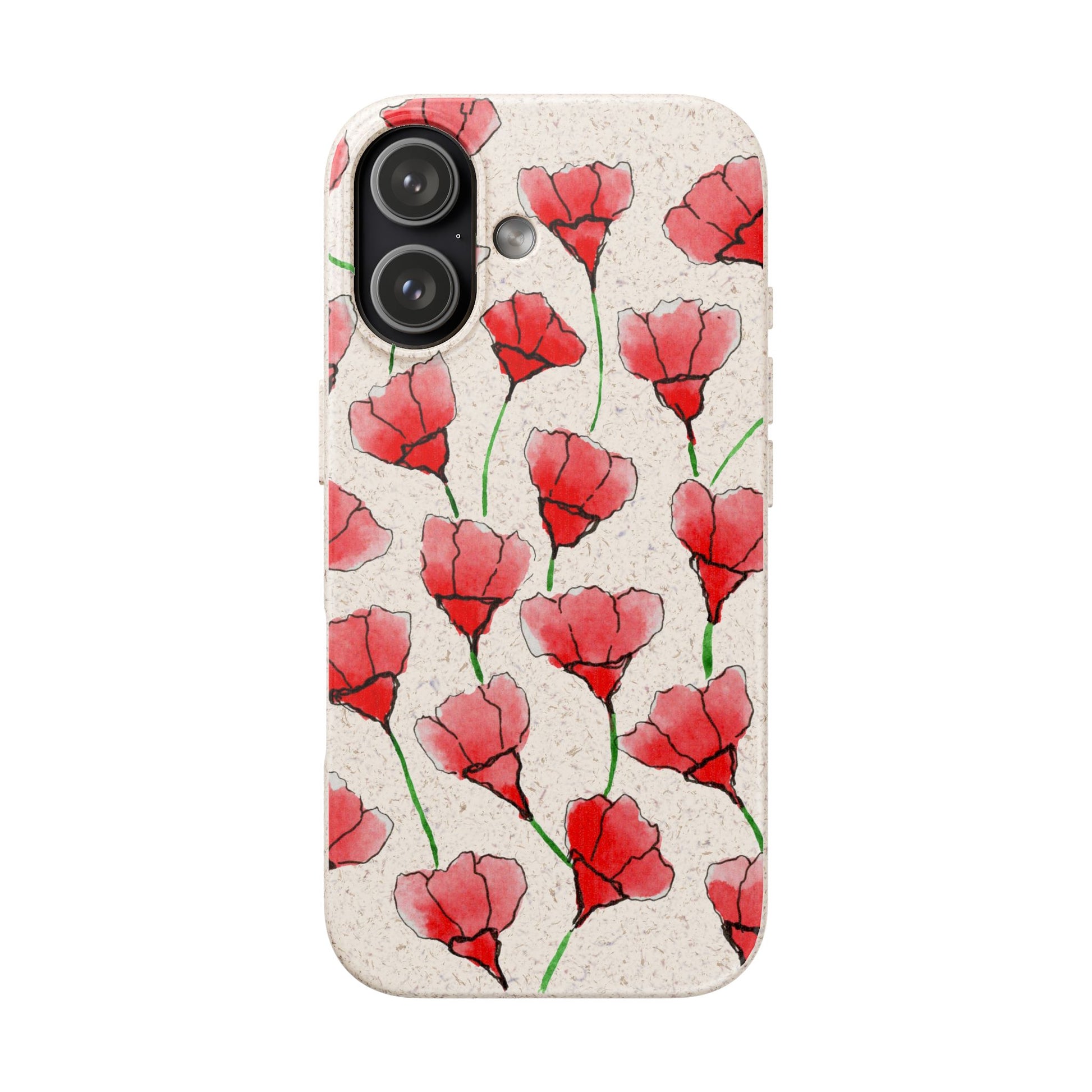 This biodegradable phone case features a hand-painted watercolor poppy design, adding a soft, artistic touch inspired by nature’s wildflowers while protecting your phone and the planet in one beautiful move.